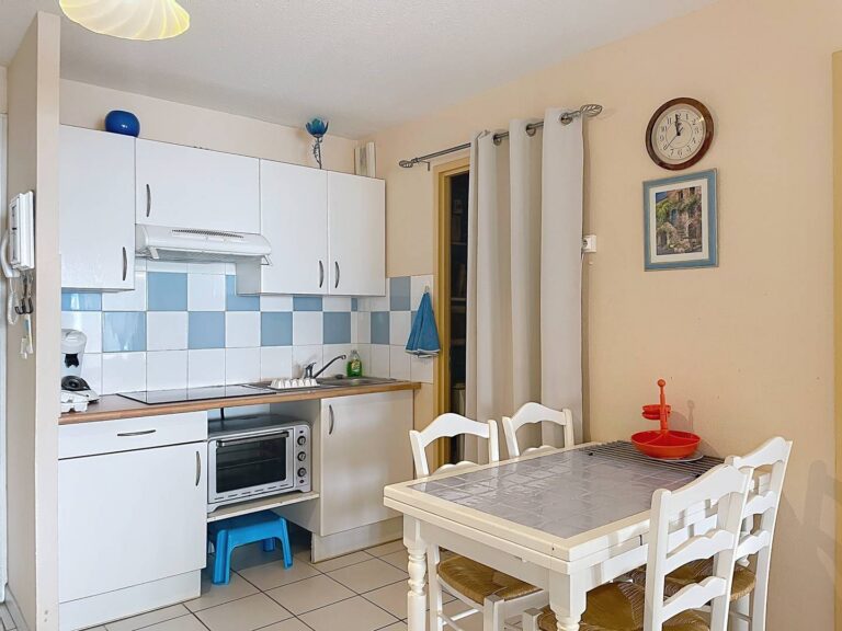 L’appartement bénéficie en outre d’une place de parking privative dans le parking de la résidence, un avantage particulièrement appréciable en période estivale.
